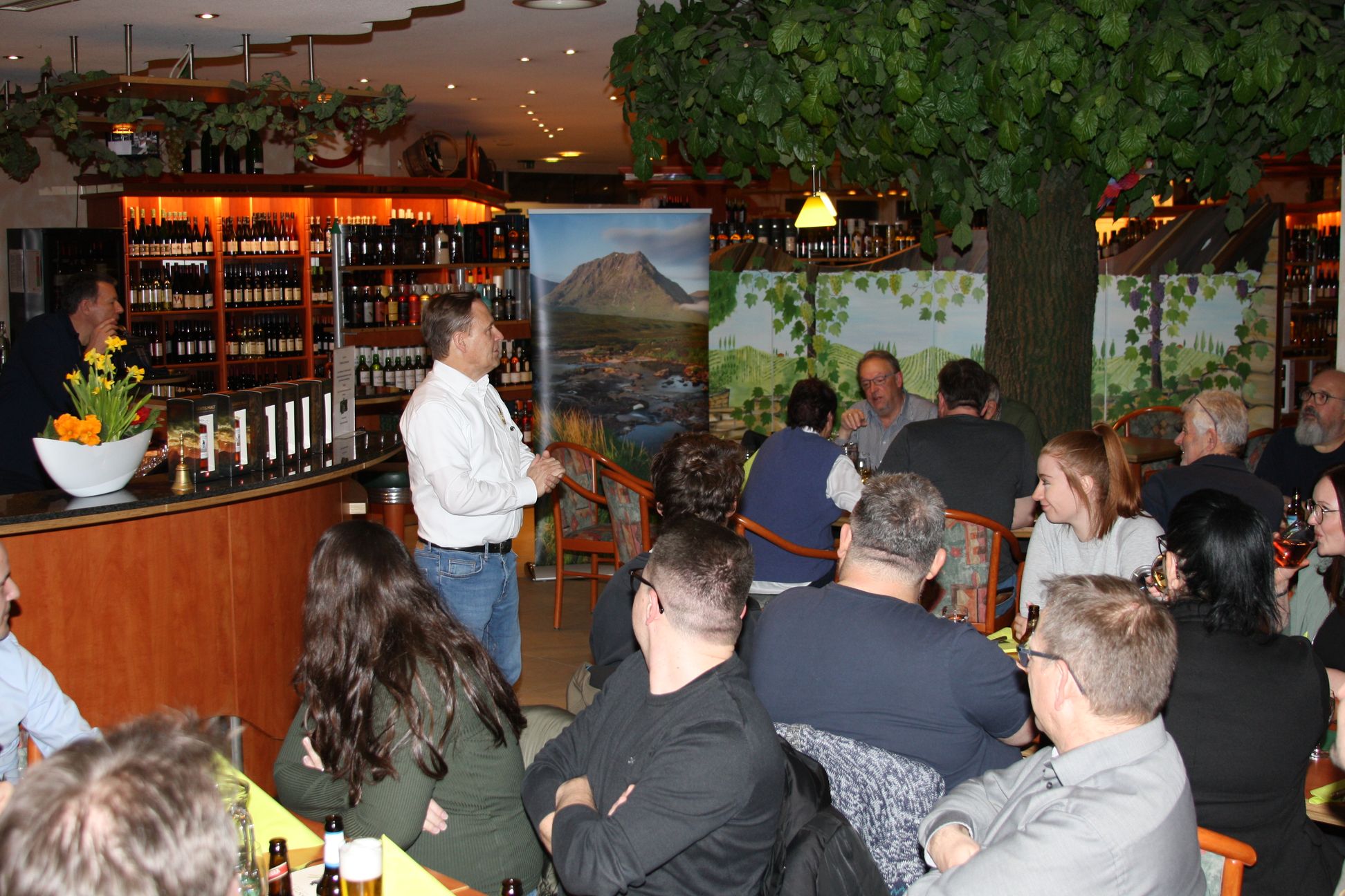 Ein Abend voller Genuss und Geschichten: Beim Whisky-Tasting im Weinhaus Gebhart erwarteten die Gäste sechs erlesene Whiskys, begleitet von einer humorvollen Kurzgeschichte von Fiona Simpson-Stöber. Die Kombination aus aromatischen Tropfen und fesselnder Erzählkunst machte den Abend unvergesslich. Abgerundet wurde das Erlebnis mit einem herzhaften Guinness-Stew. Tauchen Sie ein in die Bildergalerie und erleben Sie die besondere Atmosphäre dieses außergewöhnlichen Tastings!